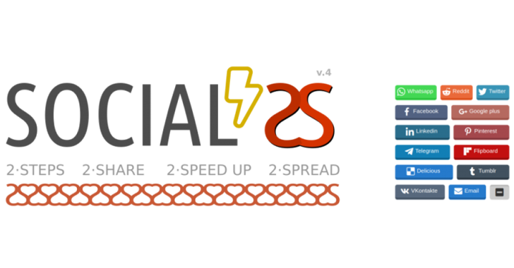 Social 2s doesn’t load external javascript if not needed, and only loads the required javascript. Say goodbye to load hundreds of unnecessary scripts and say hello to a faster web.