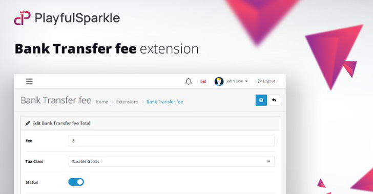 The Playful Sparkle – Bank Transfer fee extension for OpenCart 3.x+, 4.x+ allows store owners to easily add a customizable fee when customers choose Bank Transfer as their payment method. Designed to streamline the payment process, it ensures accurate handling of bank transfer fees directly within checkout. This extension helps cover transaction costs for businesses, enhancing the overall checkout experience by transparently including the fee where applicable. Perfect for e-commerce businesses of all sizes, it requires no technical expertise to set up and integrates seamlessly with OpenCart 3.x+, 4.x+.